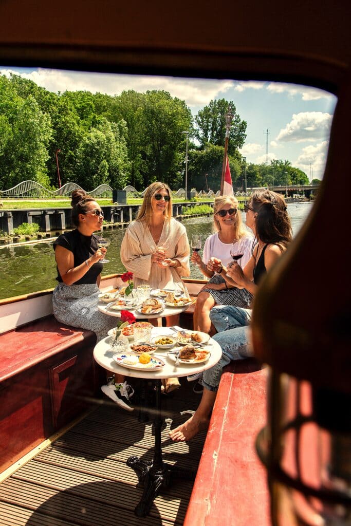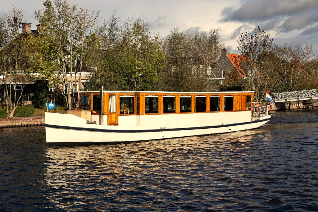 De Iron Lady is een prachtige klassieke salonboot uit 1905 met ruimte voor maximaal 12 personen. De zijkanten van de boot kunnen open en dicht zodat je in elk weertype kunt genieten van de tocht. De Iron Lady is ideaal voor gezelschappen waar rust of concentratie centraal staat. Dobber onder het genot van een hapje en drankje rustig de Vecht af vaar door hartje Utrecht.